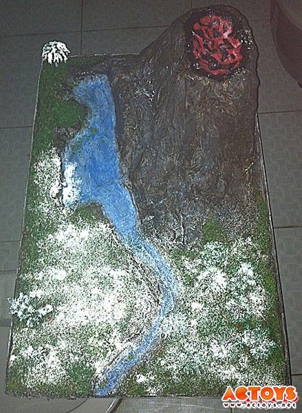 图上像下雪的地方就是我涂了夜光漆的地方,草地、树、湖水、火山口全部都涂了夜光漆,但没单反 根本体现不出来,关灯眼睛看倒是效果非常好,下面配上超蛙随便来几张渣图了,照不出效果实在是 没意思。