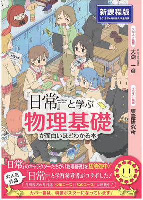整天面对着枯燥乏味的课本,你是否会有种厌倦读书的感觉呢?在日本教科书萌化已不是什么新闻了,比如《元素周期——可爱又好记的化学基础》、《<猫耳少女>量子论萌之最新物理学》等都是这类书籍,书本中用可爱的卡通人物插图以及简明易懂的语句,让大家轻松学会知识。而如今中经出版社也将推出一本类似这样的教科书,那就是与动画片《日常》合作的《与<日常>一起学习物理基础其实很有趣》,该书将于6月15日发行,售价1000日元。