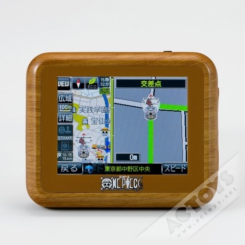 导航系统启动时,导航仪的液晶屏上会随机出现《海贼王》的主题开机画面。导航图中,自车的位置会以海盗船“万里阳光号”的图标表示。除导航功能外,这款导航仪还具备气压及天气预测、热量消耗计算、MP3/WMA音乐播放、WMV/AVI(Xvid codec)视频播放、JPEG/BMP图片显示等多种功能。另外,这款导航仪还拥有IPX5等级的防水性能。