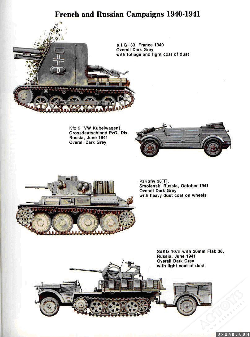 需要注意的是很多情况下,特别是由于东线的巨大损失,一些完成热带涂装(译注:黄棕色夹灰绿色或者棕色夹灰色)准备送往北非的车辆被作为补充物质运往了东线。这使得伪装色体系有时候让人看不懂。(这也从一个侧面反映了德国坦克和卡车始终处于数量不充足的状态)