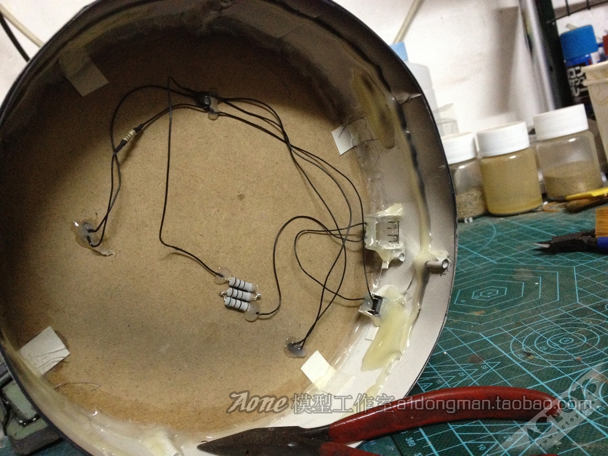 30. 最后底座的线路连接,通过USB接口输入电压,加上开光,电路完成。