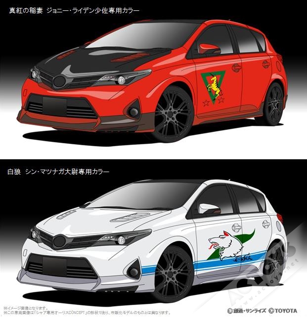 今年年初,日本丰田公司宣布将于年内推出“赤色彗星”夏亚专用版AURIS,并同时成立了虚拟分公司“吉翁丰田”,预示了今后极有可能出现黑色三连星版、青色巨星版本。日前丰田公布了这两款车型涂装设计图,以供粉丝先睹为快。
