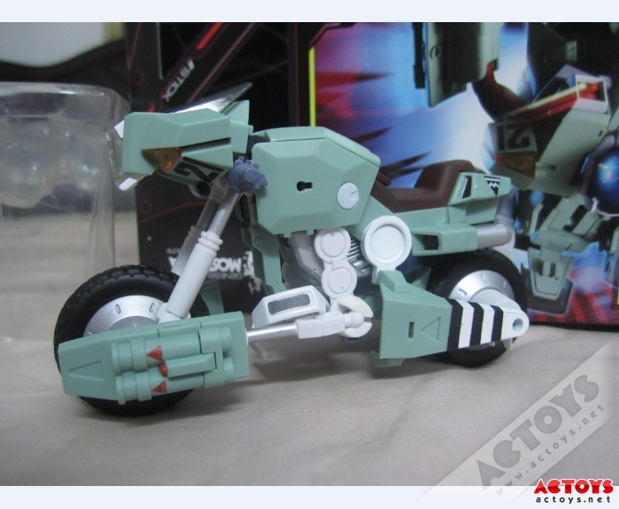 摩托车非常的赞,这点毋庸置疑,单单从外形的设计就可以看出和动画的高还原度了,这个摩托的设计 可是要完爆CMS的哦,只是没有Toynami的大,但是外形不输给Toynami哟!主角骑上摩托,哈哈,是不 是满满的童年的回忆涌出来了?芒果我可是又看了一遍机甲创世纪呢,真的是大爱啊!