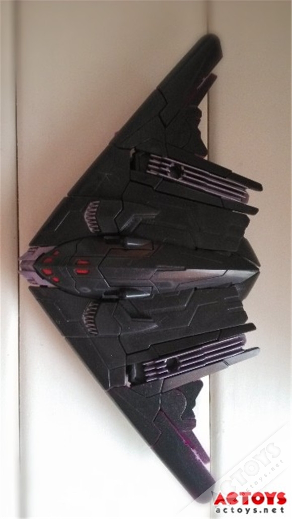 看图片就知道了,从上面和正面看,就一款D级别的变形金刚玩具来说,这款B-2几乎是无懈可击。硬要说缺点的话,应该就是缺少个霸天虎的标志吧。