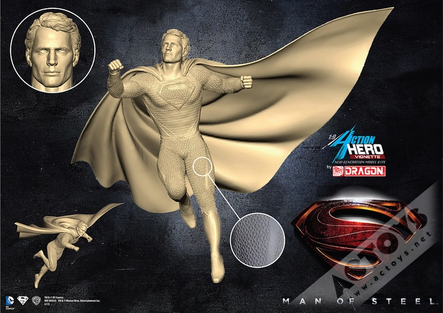 威龙工作室(Dragon Models Limited)与旗下的先进技术研发小组 (DART),携手推出了1/9《超人:钢铁之躯》的高度精制人物模型 , 预定于2013香港动漫节会场贩售! 与系列作品一样,本新作也有分组装式模型及预先上色的收藏品两种选择。 目前官方情报看来,新款造型服装细节都有用心设计,有兴趣的朋友可以到威龙的摊位参观!