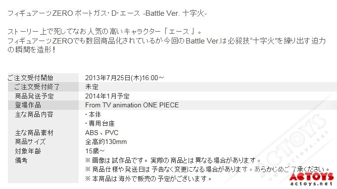 魂商店 限定 艾斯 -Battle Ver. 十字火明年发售