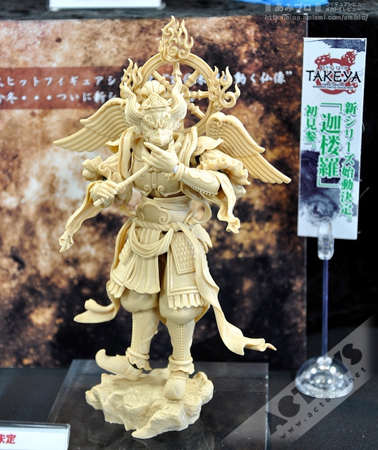 十分受欢迎的海洋堂轮转可动佛像系列在最新WF2013夏公开了 リボルテックタケヤ迦楼罗的素色样品,迦楼罗印度神话中的一种巨鸟,主神毗湿奴的坐骑,佛教吸收此鸟为天龙八部之一,其形象随佛教传入东亚,中文常译为金翅鸟或大鹏金翅鸟,在中亚和南西伯利亚受到藏传佛教影响的地区也存在此鸟的神话。