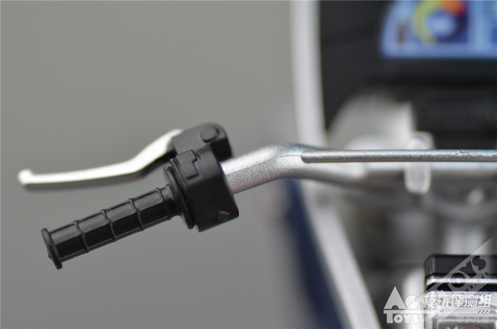 车把手做的也很精致,防滑用的纹路和金属感的刹车很到位。