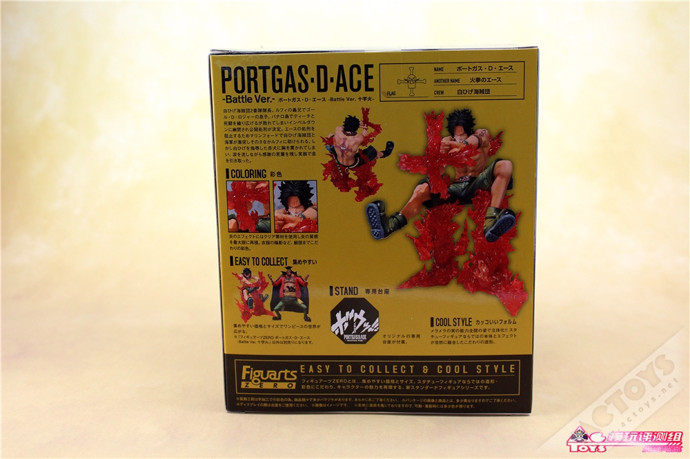 外盒:黑色为主,十字火成为主要的装饰,艾斯较淡,整体风格沉稳,正面第一眼看上去不太像是手办的盒子