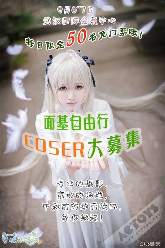 Coser自由行活动,Coser福利来啦!截止8月底,参赛者只需将cos照发至邮箱animepower_zequnsz@126.com 审核通过后,当日着报名角色的cos装扮来免费领票进场!之后返照,会放出投票,票数最高的可以免费拿下届漫展(有男声优)门票!参加者9月6~7日每天限额50人。
