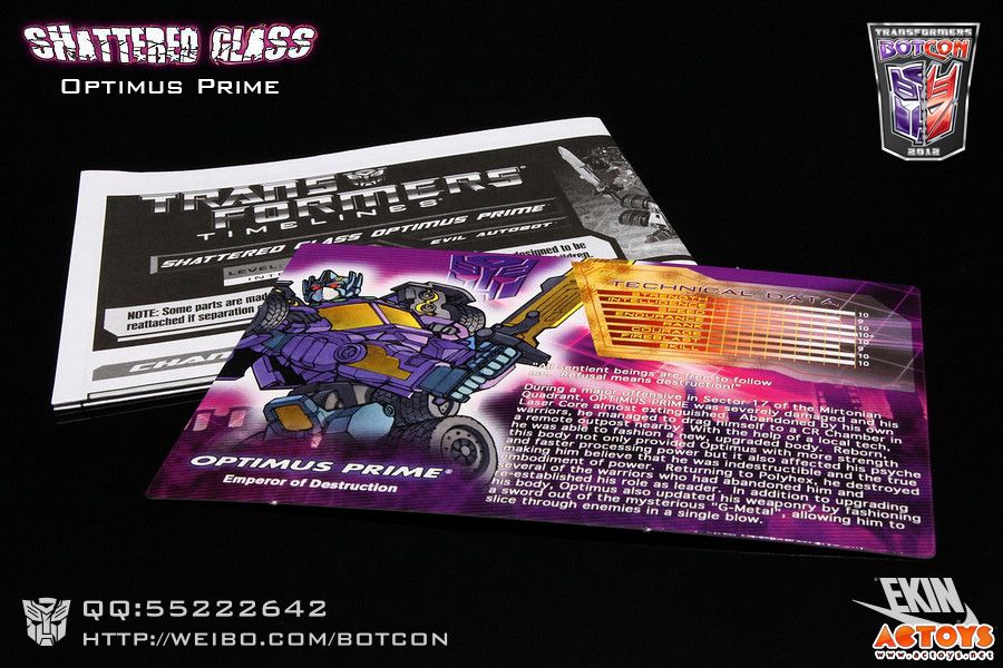 2008年Botcon年会上,这个由经典系列擎天柱模具重涂的紫色邪恶OP一登场便吸引了无数人的眼球。因为大哥一向都已成熟稳重领导正义的姿态出现,一下变成了破坏大帝,万恶之首实在让很多刚丝难以接受。但是正是由于这位邪恶大哥的惊艳亮相,也使得更多人了解了镜像世界并关注其他的角色设定,我也是这么走过来的。直到今天,孩记再次利用G2OP的模具重涂了这款身价倍涨的大哥并再次发售于Botcon年会上。