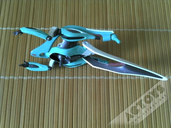 Warrior形态的组装,需要先将上半身地步的球形关节插栓由向前转为向下,这样才能够顺利与下半身组合。