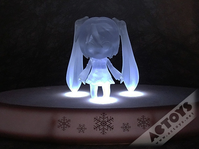 发光底座有三盏LED灯,刚好对应初音雪人的双腿和左、右辫子~