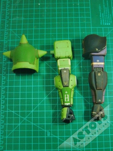 左臂与右臂基本相同,冲撞肩甲上面的警告线是刻线后上色完成。